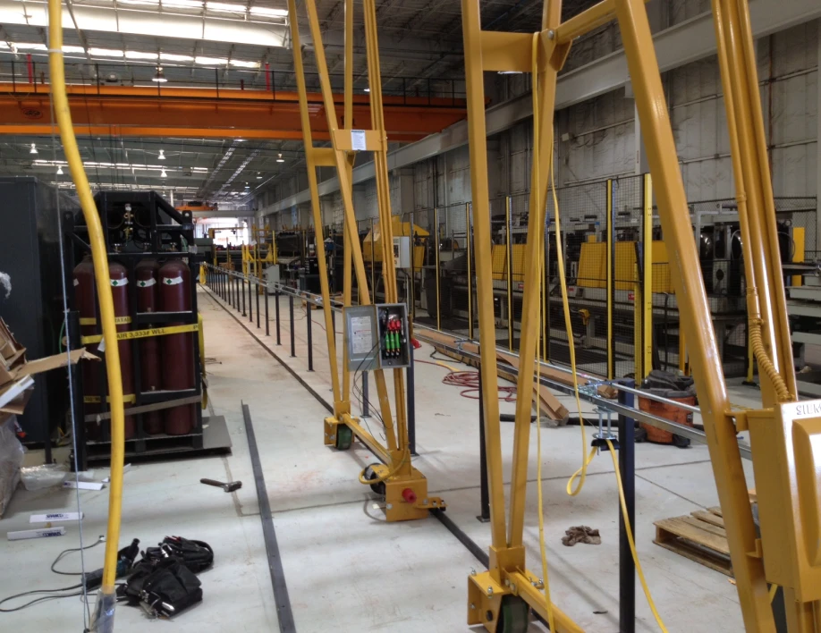Integrated bridge crane systems for automotive assembly lines, parts handling, and maintenance operations requiring seamless workflow integration.